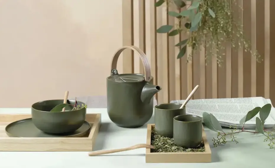 Olivgrünes Porzellan mit Effektglasur