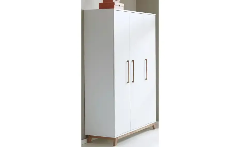 Kleiderschrank (B/H/T): 130/192/51 cm, Wickelkommode inkl. Wickelaufsatz (115/104/77 cm), Babybett inkl. Lattenrost (144/89/75 cm)