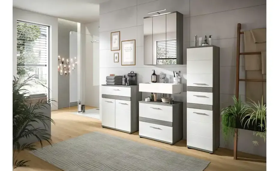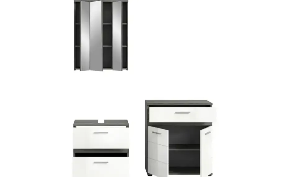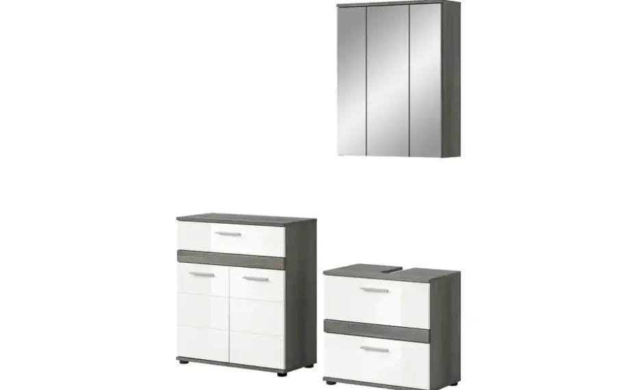 Waschbeckenunterschrank 60 x 57 x 34 cm, Spiegelschrank 60 x 77 x 21 cm, Midischrank 71 x 79 x 31 cm