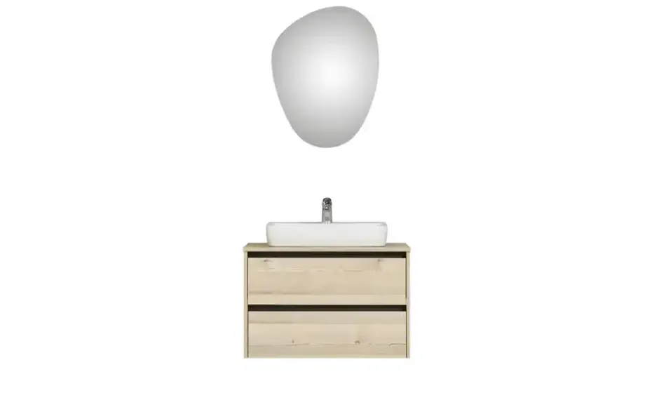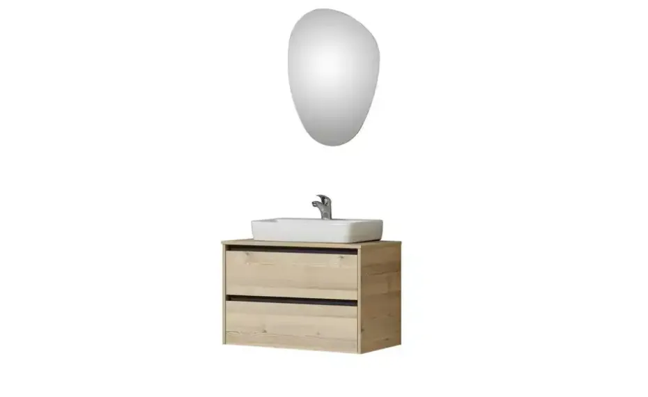 Keramikaufsatzbecken H/B/T 90/600/400mm, Waschtischplatte H/B/T 16/810/445mm, Waschtischunterschrank H/B/T 513/800/455mm, Spiegel H/B/T 722,5/551/42mm