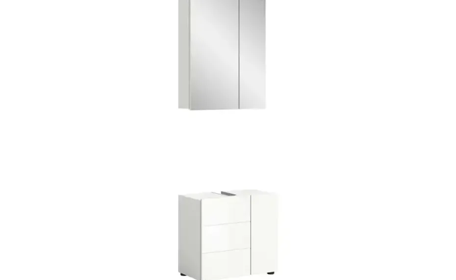 1x Waschbeckenunterschrank (B/H/T ca. in cm: 60/57/34 cm), 1x Spiegelschrank (B/H/T ca. in cm: 60/77/18 cm)