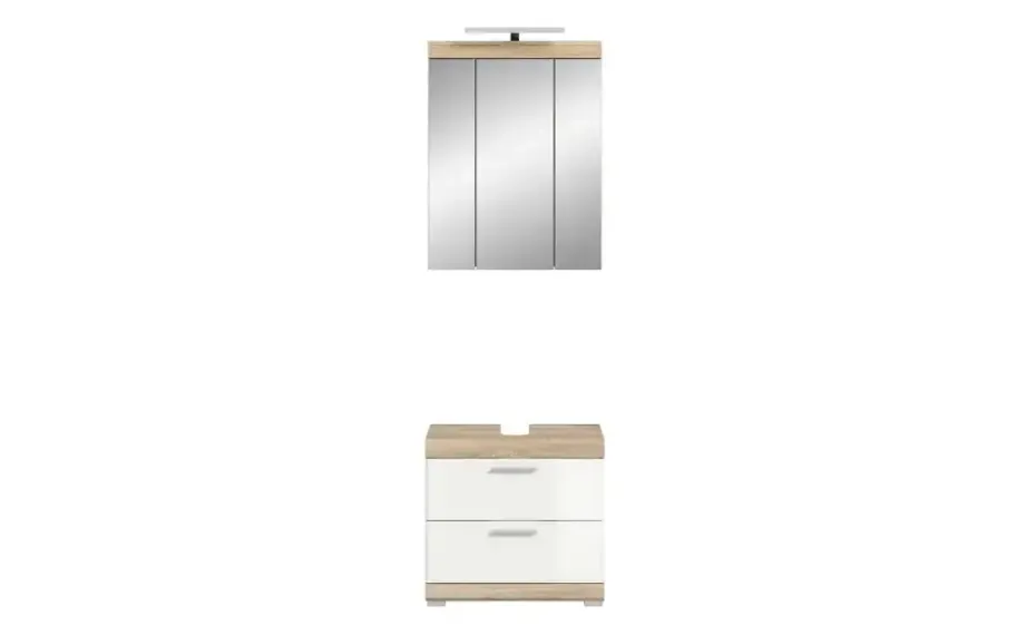 Badmöbel-Set SCHLOONSEE, 2 teilig, inklusive LED Beleuchtung, bestehend aus: Waschbeckenunterschrank, Spiegelschrank, LED Badaufsatzleuchte Schloonsee