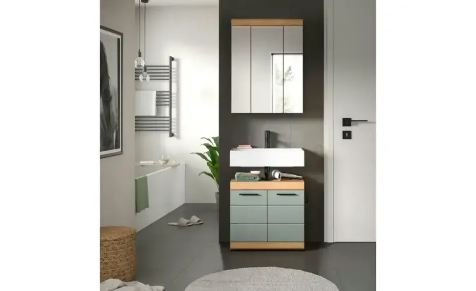 Be the first to review “Badmöbel-Set SCHLOONSEE, 2 tlg., bestehend aus: Waschbeckenunterschrank, Spiegelschrank, in verschiedenen Farben erhältlich, Badmöbel, Kombination, Badezimmer Schloonsee | Eiche Artisan (Nachbildung), Salbeigrün” Antworten abbrechen