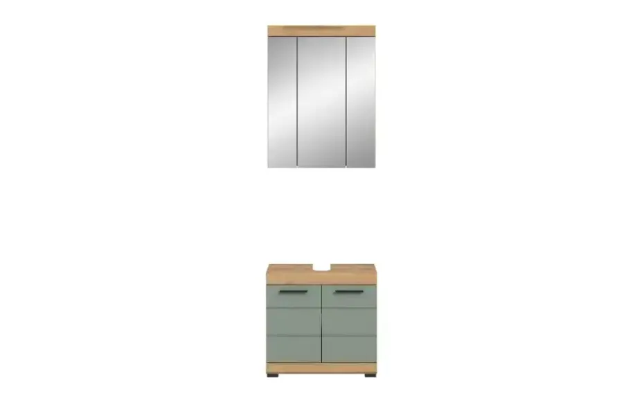 Badmöbel-Set SCHLOONSEE, 2 tlg., bestehend aus: Waschbeckenunterschrank, Spiegelschrank, in verschiedenen Farben erhältlich, Badmöbel, Kombination, Badezimmer Schloonsee | Eiche Artisan (Nachbildung), Salbeigrün