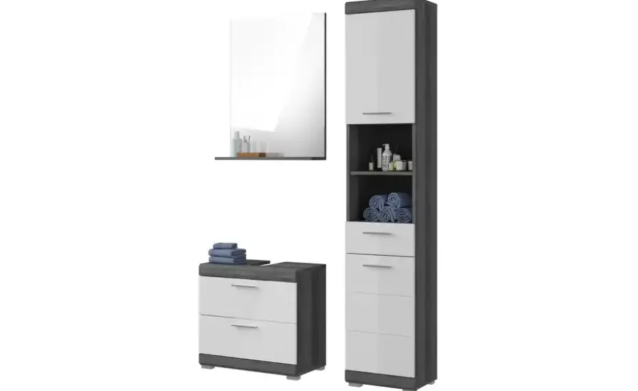 Badmöbel-Set SCHLOONSEE, 3 teilig, bestehend aus: Hochschrank, Waschbeckenunterschrank, Spiegel Schloonsee