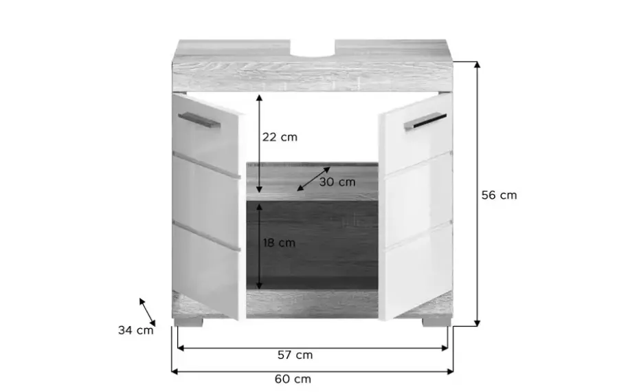 Entdecken Sie die perfekte Kombination aus Stil und Funktionalität für Ihr Badezimmer mit unserer Badkombination in Sonoma Eiche hell und weißem Hochglanz. Sie bietet bietet ausreichend Stauraum und verleiht Ihrem Raum einen modernen und ansprechenden Look. Tauchen Sie ein in zeitlose Eleganz und optimale Organisation mit diesem einzigartigen Möbelstück.