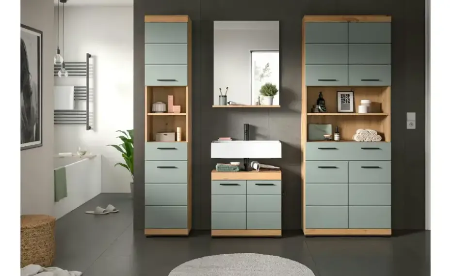 Be the first to review “Badmöbel-Set SCHLOONSEE, 4 teilig, bestehend aus: Hochschrank, Waschbeckenunterschrank, Badspiegel, Hochschrank breit Schloonsee | Eiche Artisan (Nachbildung), Salbeigrün” Antworten abbrechen