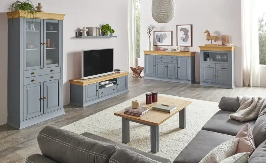 Die Serie Bornholm ist für Liebhaber des romantischen Landhaus-Stils perfekt. Massives Kiefernholz mit liebevollen Details machen jedes Möbelstück einzigartig. Highlight: Die Abdeckplatte, die je nach Farbvariante Kontrast oder abrundendes Element ist. Bei diesem Barschrank sind die beiden Türen mit einer attraktiven Kassettensteppung verziert. Dahinter stehen Ihnen insgesamt vier Fächer zur Verfügung. In den beiden darüberliegenden Schubfächern findet Kleinkram problemlos Platz. Der obere Bereich des Barschranks ist mit einer Vitrinen-Klappentür versehen. Hier können Sie Getränke, Gläser und Mehr in Szene setzen.