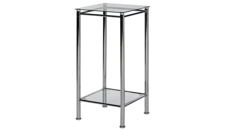 Der Beistelltisch Anna macht sich im Wohnraum, Schlafzimmer oder auch dem Flur gut. Er kann für Blumen oder dekorative Leuchten genutzt werden. Neben der Tischplatte können Sie auch die Ablage nutzen. Beide sind aus stabilem Sicherheitsglas. Das Gestell besteht aus verchromtem Metall.