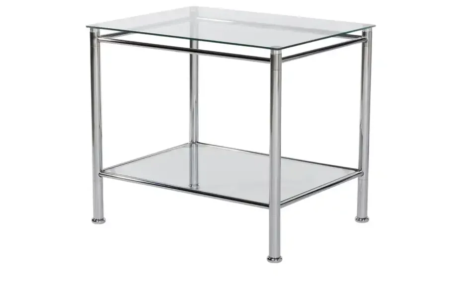 Der rechteckige Beistelltisch passt durch sein Design aus Chrom und Glas gut zu modernen Einrichtungsgegenständen. Zudem bietet er durch seine beiden Ablageflächen viel Raum für Ihre Gebrauchsgegenstände und Accessoires. Die Ablageflächen bestehen aus Sicherheitsglas, das Gestell ist Metall chromfarbig.