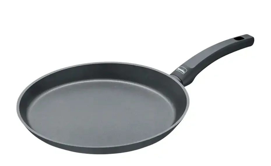 Flacher Rand zum einfachen Wenden von Crépes, Pfannkuchen, Omelettes, Tortillas / Wraps, Spiegeleier / Rührei etc.