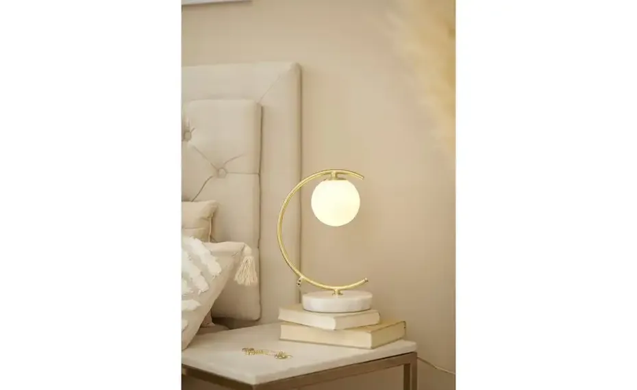 Entdecken Sie jetzt die zweite Influencerkollektion, die mit Cita Maass exklusiv für Höffner designt wurde. Die Kollektion greift Elemente des Boho-Stils auf und verströmt einen ganz besonderen Charme. Filigran, edel und perfekt für Nacht- oder Beistelltische: Diese schöne Tischleuchte erinnert mit ihrem Design und dem goldfarbenen Gestell an einen C-förmigen Sichelmond. Der runde Standfuß aus Marmor harmoniert mit dem goldfarbenen Metallgestell und verleiht der Lampe den letzten Schliff.