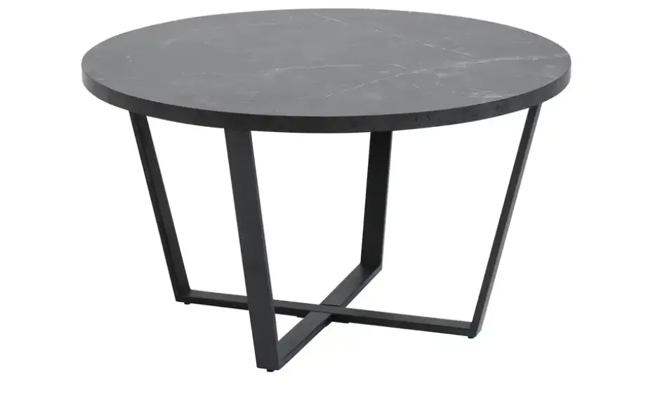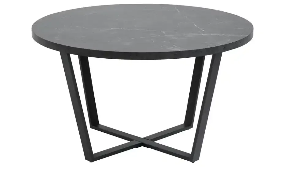 Der Couchtisch Adrian fügt sich mit seinem eleganten Design in nahezu jeden Einrichtungsstil ein. Trendige Kufenfüße in Mattschwarz betonen die moderne Tischplatte in authentischer Marmor-Optik. Auf der pflegeleichten Tischplatte können Sie dank des Durchmessers von 77 Zentimetern Vasen und andere Deko-Objekte mühelos in Szene setzen.