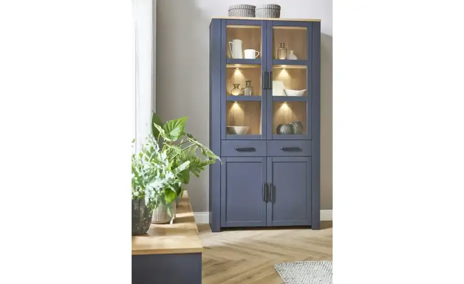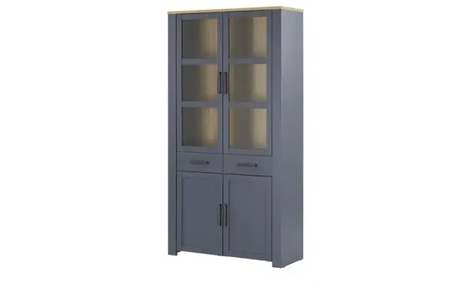 Doppelvitrine Toneo | Eiche (Nachbildung), Dunkelblau