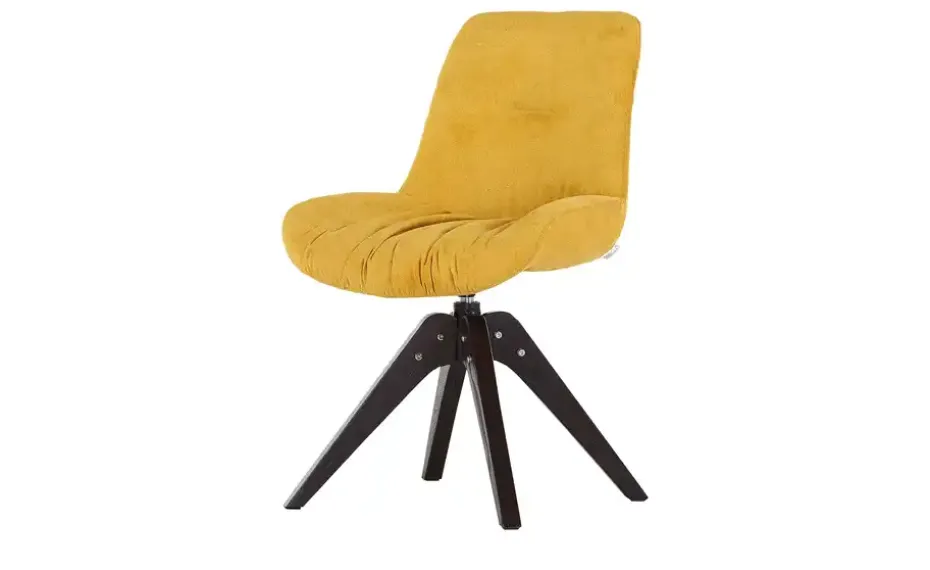 Dieser Stuhl überzeugt mit dem gelungenen Zusammenspiel aus hübschem Stil und Funktion. Eine praktische Drehfunktion verleiht dem Sitzmöbel den letzten Schliff. Die Sitz- und Rückenfläche des Stuhls bietet nicht nur dank ihrer Form, sondern ebenso dank ihres Bezugs aus Flachgewebe herausragenden Komfort. Dieses gepolsterte Modell überzeugt in Gelb. Die bequeme Polsterung aus Schaumstoff macht den außergewöhnlichen Sitzkomfort perfekt. Das Modell Buffalo weist eine Gesamtbreite von 55 cm, eine Höhe von 84 cm sowie eine Tiefe von 60 cm auf. Werten Sie Ihre vier Wände mit diesem Stuhl geschmackvoll auf.