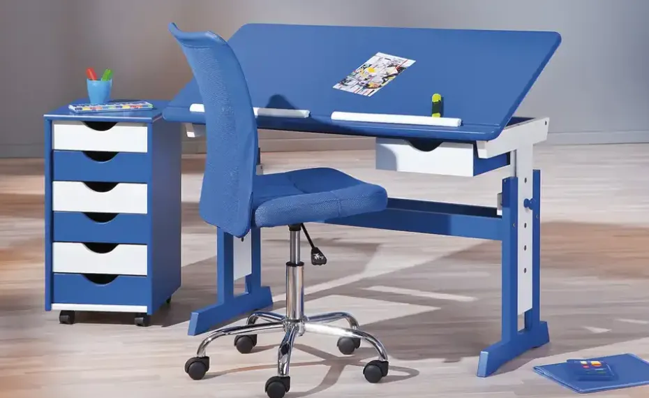 Mit diesem Drehstuhl sitzt Ihr Nachwuchs beim Erledigen der Hausaufgaben komfortabel. Der moderne Drehstuhl besitzt eine luftdurchlässige, leicht gebogene Rückenlehne, welche den Rücken stützt. Die gepolsterte Sitzfläche ist von 44 auf 54 Zentimeter höhenverstellbar und sowohl für frisch eingeschulte Kinder und ältere Schulkinder geeignet. Dank der leichtgängigen Universalrollen ist der Drehstuhl auch auf Teppichböden mobil.