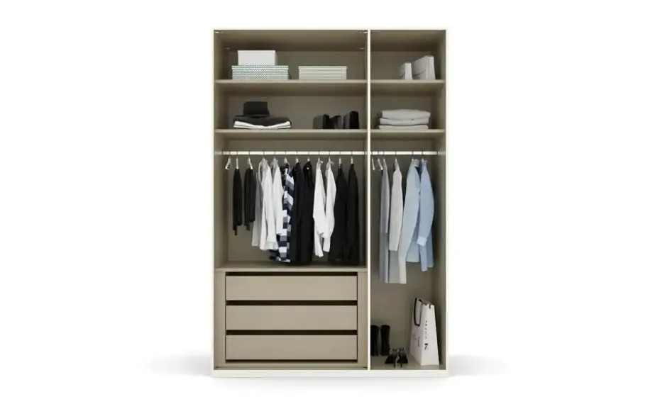 4 Fachböden, 2 Kleiderstangen, 3er Schubkasteneinsatz, Innenspiegel, Krawattenhalter