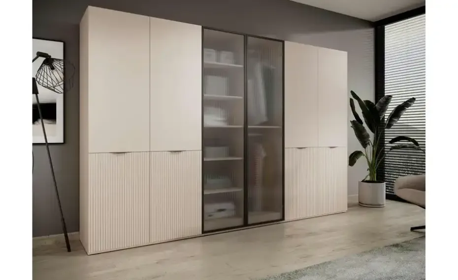 Drehtürenschrank Sandbox | ohne Beleuchtung, Beige, satiniert