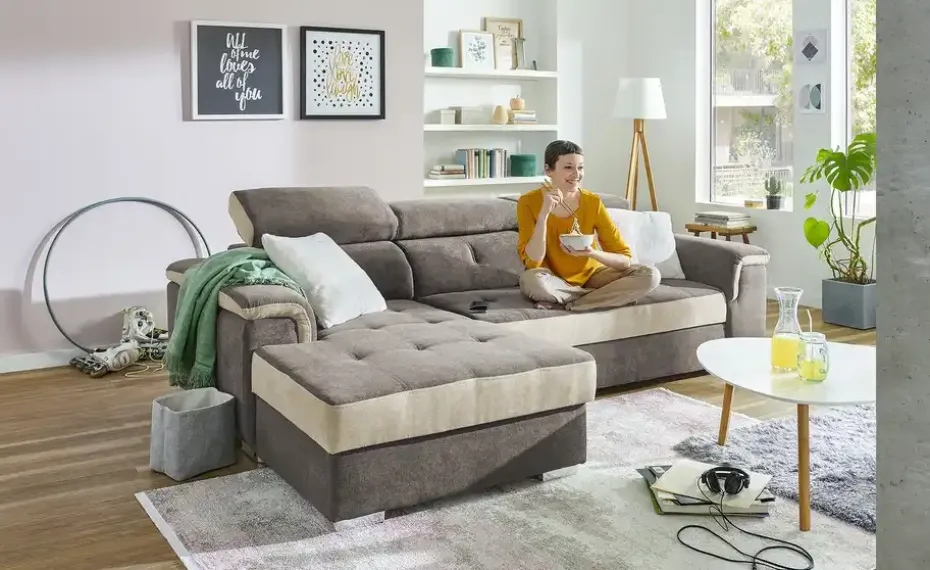 Das Ecksofa Aversa ist ein wahres Highlight und besticht zudem durch einen besonderen Gemütlichkeitsfaktor. Die Couch ist dank der Kopfteilverstellung extrem bequem, hat einen echt bespannten Rücken, sodass sie ohne Probleme mitten im Raum aufgestellt werden kann, und lädt auch aufgrund der komfortablen Polsterung aus Schaumstoff zum Wohlfühlen ein. Sie besticht mit ihrem Gestell aus Kunststoff. Das Modell Aversa dient durch den im Lieferumfang enthaltenen Bettkasten als Stauraummöbel und nimmt insgesamt 178 x 102 x 274 cm ein. Dieses Sofa sorgt auch in Ihren vier Wänden für einen außergewöhnlich hohen Wohlfühlfaktor.