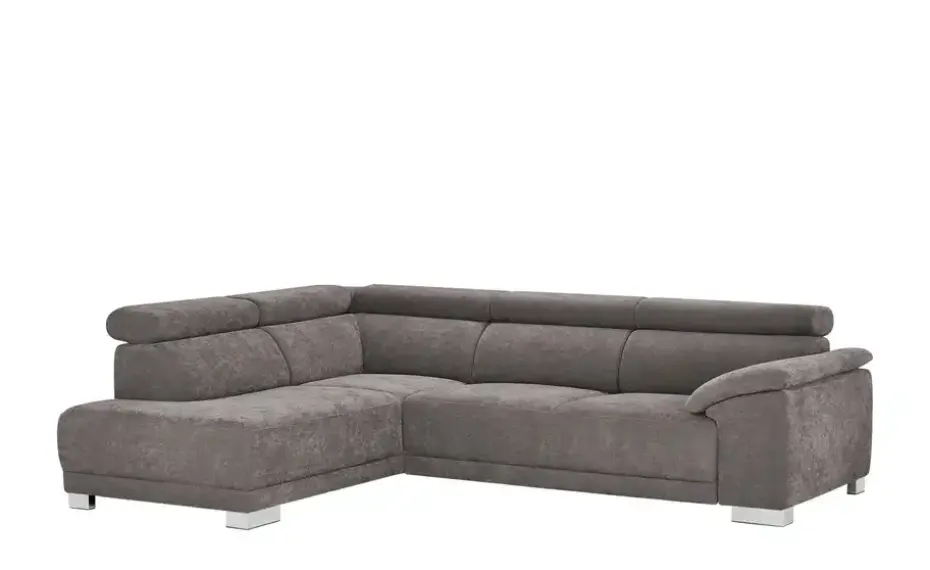 Das Ecksofa Chocolo erzeugt eine ausgesprochen gemütliche Atmosphäre. Die Couch ist dank der Kopfteilverstellung eine absolute Oase der Entspannung, verfügt über eine komfortable Polsterung aus PUR-Schaum für das maximale Wohlfühlerlebnis und hat einen echt bezogenen Rücken, sodass sie auch mittig im Raum platziert werden kann. Sie begeistert mit ihrem Gestell aus Massivholz und Metall. Dieses Sofa wird sicher zum neuen Mittelpunkt Ihrer vier Wände.