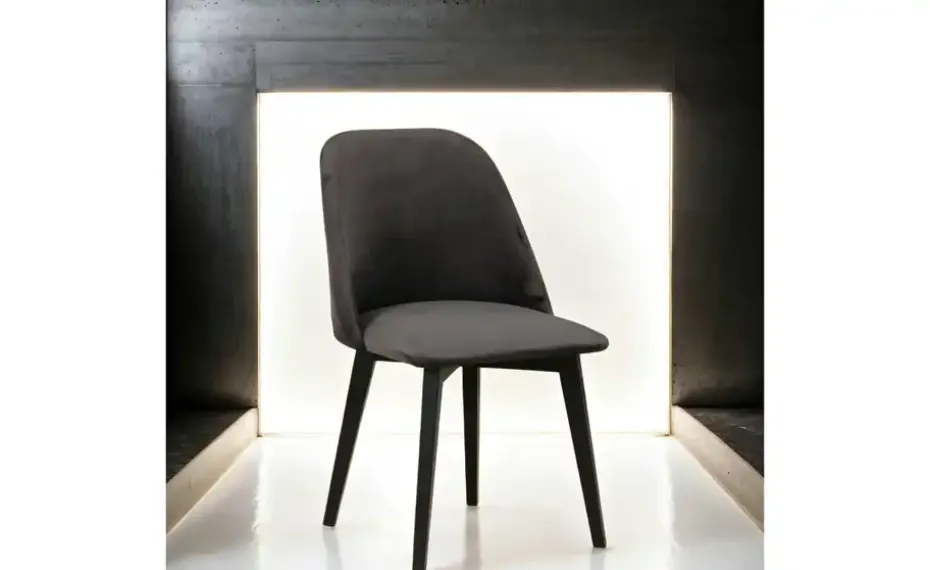 Die Stuhlbeine sind aus Buchenholz gefertigt. Der Sitz und die Rückenlehne sind gepolstert.