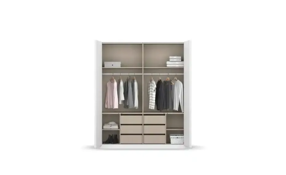 2 Kleiderstangen, 2 Fachböden, 2 Schubkasteneinsätze