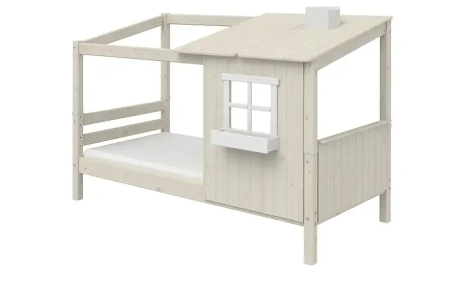 Zaubern Sie Ihrem Kind eine ganz besondere Ruheoase – und zwar mit dem Bettgestell Flexa Classic Haus von FLEXA. Ein Teil des Bettes hat ein niedliches Holzhausdesign. Es hat eine Holzlattenoptik, ein Dach samt Schornstein und Fenster mit Blumenkästen davor. Bettgestell und Haus sind aus massiver Kiefer gefertigt. Sie ist stabil, langlebig und ist hochwertig verarbeitet worden. Die Oberflächen sind hochwertig lackiert bzw. lackiert und lasiert worden. Flexa Classic Haus ist unter anderem mit dem GS-Siegel ausgezeichnet. Sie können sich also über eine sichere Qualität freuen.