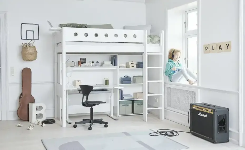 Flexa White ist ein Hochbett für das Kinder- und Jugendzimmer. Dank der erhöhten Liegefläche ergibt sich viel Stauraum unter dem Bett. Das Hochbett wird inklusive einer geraden Leiter geliefert. Flexa White ist hochwertig gearbeitet – und mit dem GS-Siegel ausgezeichnet und vom TÜV Süd zertifiziert.
