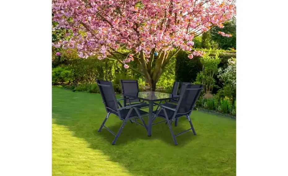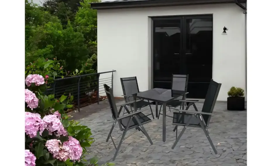 Gartenmöbel 5er-Set | Schwarzglas, Schwarz, Anthrazit
