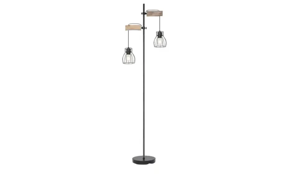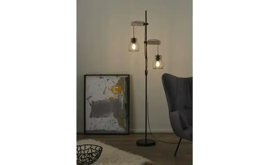 Globo Lighting Stehleuchte 2-flammig, Holz/ Metall Korb