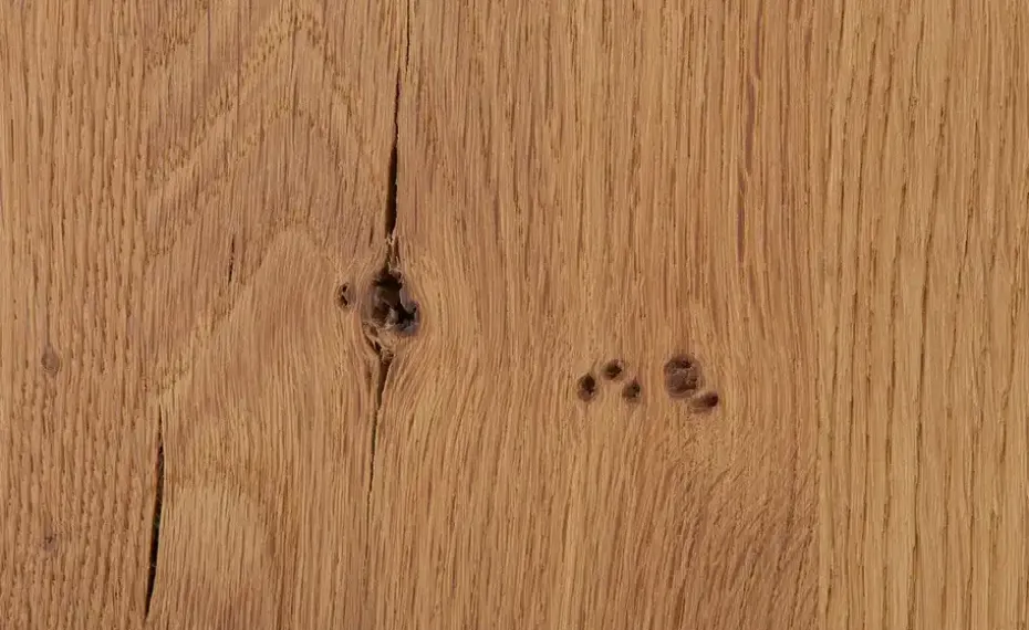 Korpus und Frontapplikation aus Kerneiche Umato massiv, gebürstet und lackiert