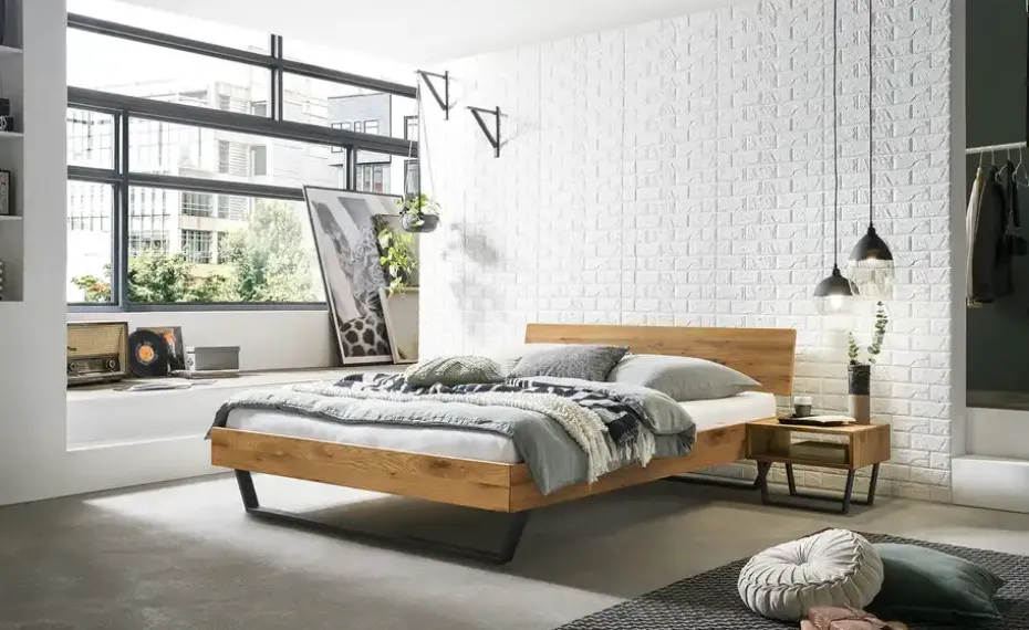 Robustes Massivholzbett im Industrial Style