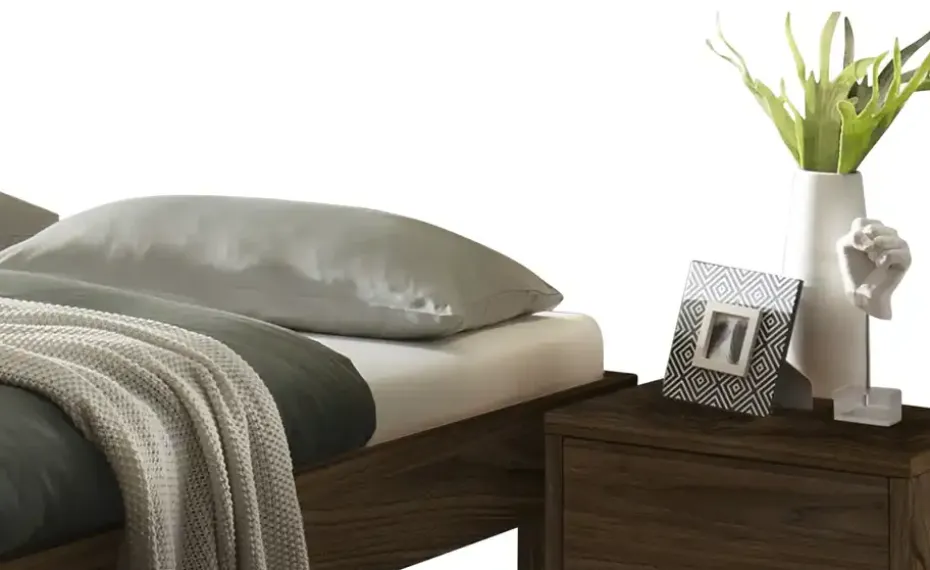 Bettgestell und Füße aus Nussbaum, geölt