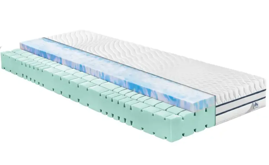 Kern: ca. 20 cm hoher 7 Zonen Schaumkern – Mittelteil mit 3D Kontur aus Hybridschaum; beidseitige Rhombotherm Auflage aus Softschaum