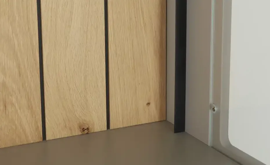 Rückwand-Akzent Balkeneiche Massivholzbalken, stark gebürstet