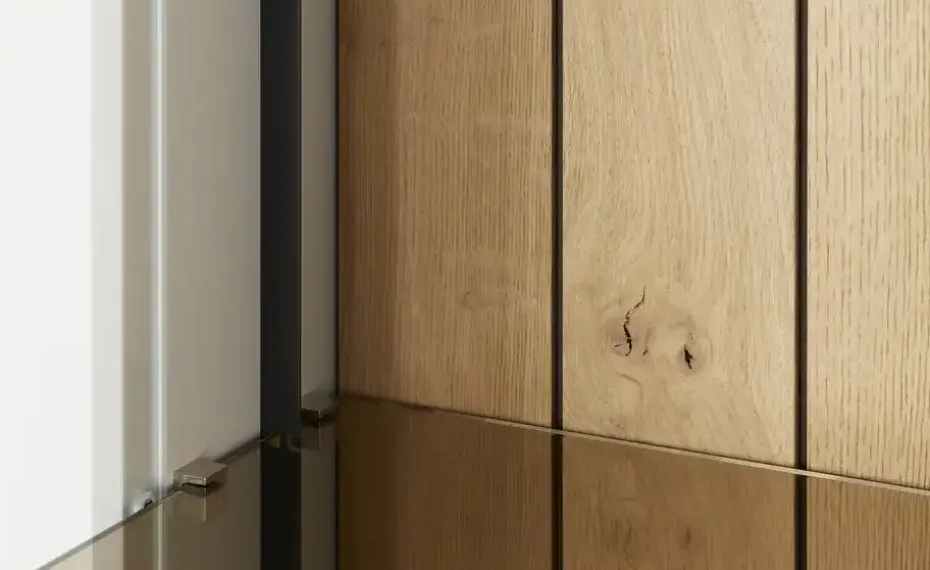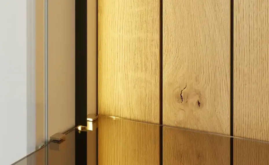 Rückwand-Akzent Balkeneiche Massivholzbalken, stark gebürstet