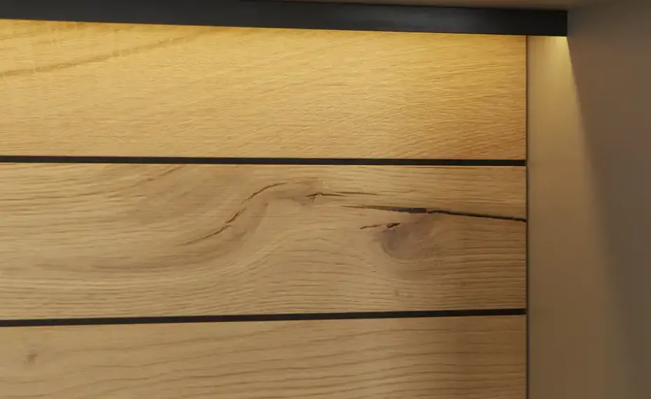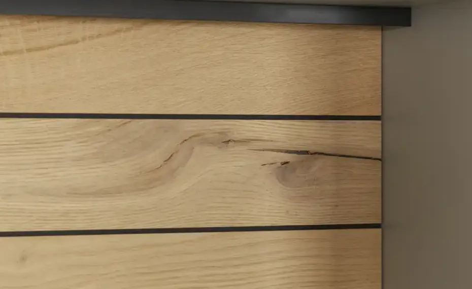 Rückwand-Akzent Balkeneiche Massivholzbalken, stark gebürstet