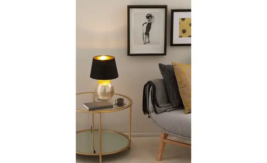 Keramik-Tischleuchte, 1-flammig, goldfarbig | Schwarz, Goldfarben