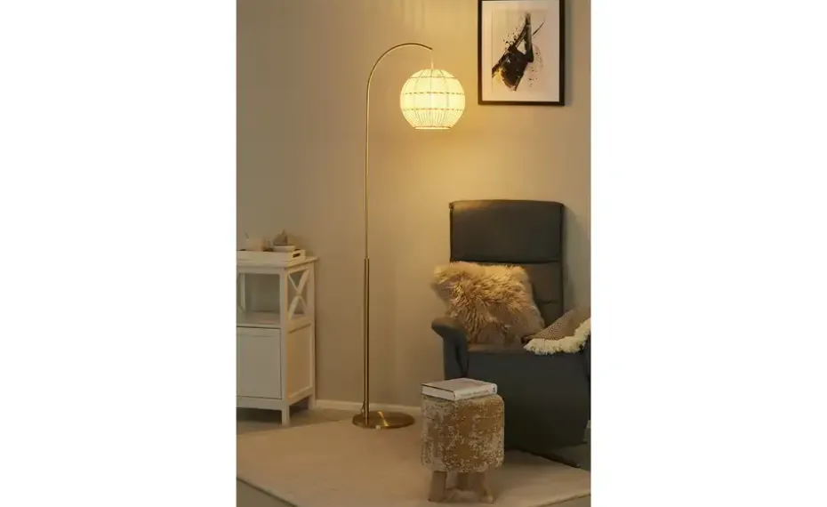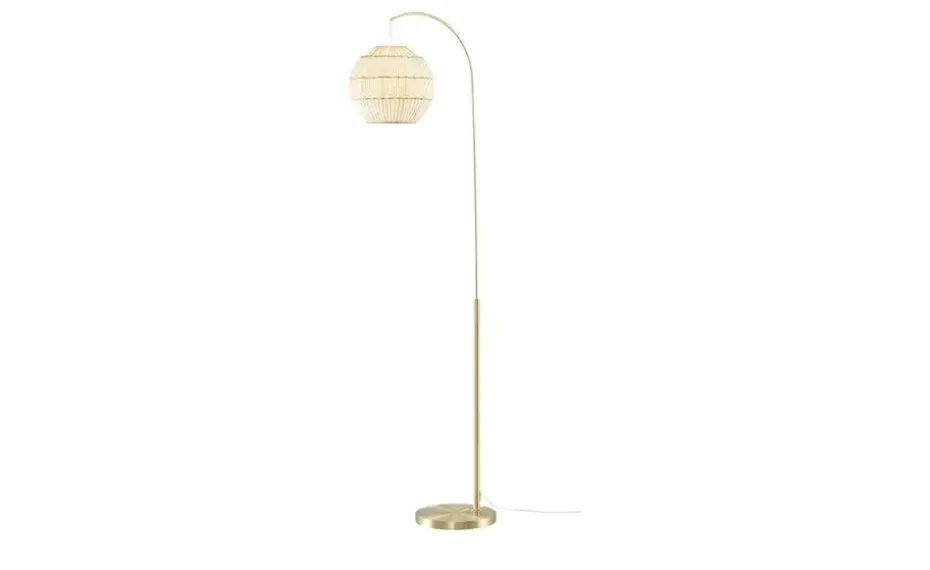 KHG Bogenleuchte, 1-flammig, messing/ Rattan-Schirm