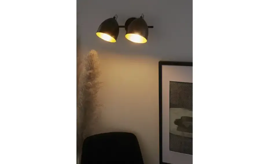 KHG Deckenstrahler, 2-flammig, schwarz innen goldfarben