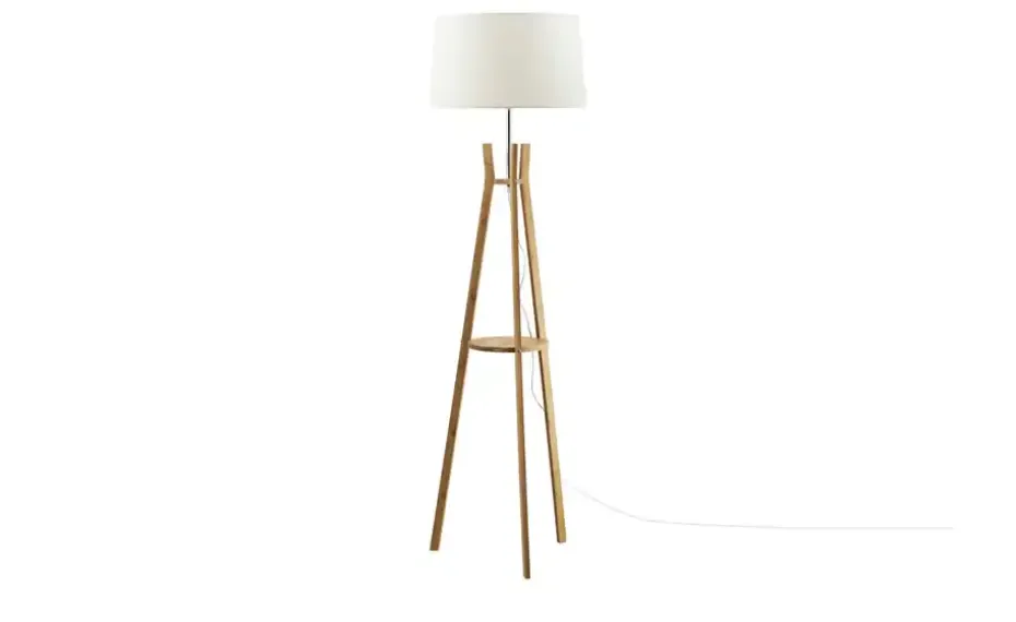 KHG Holz-Stehleuchte, mit Stoffschirm und Ablage