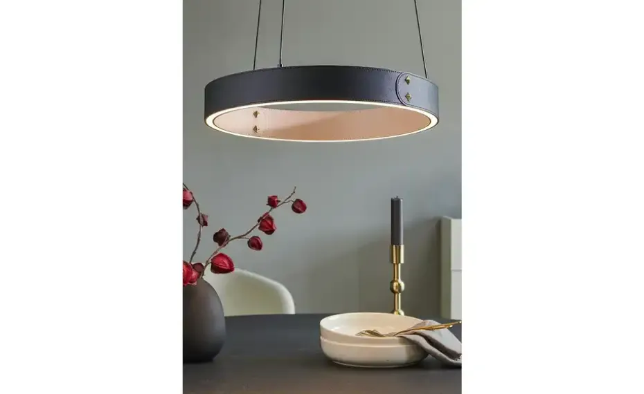 KHG LED-Pendelleuchte, Kunstleder schwarz/goldfarben