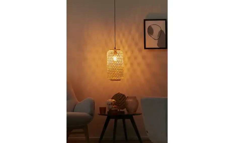 KHG Pendelleuchte, 1-flammig, Bambus-Rattan geflochten natur