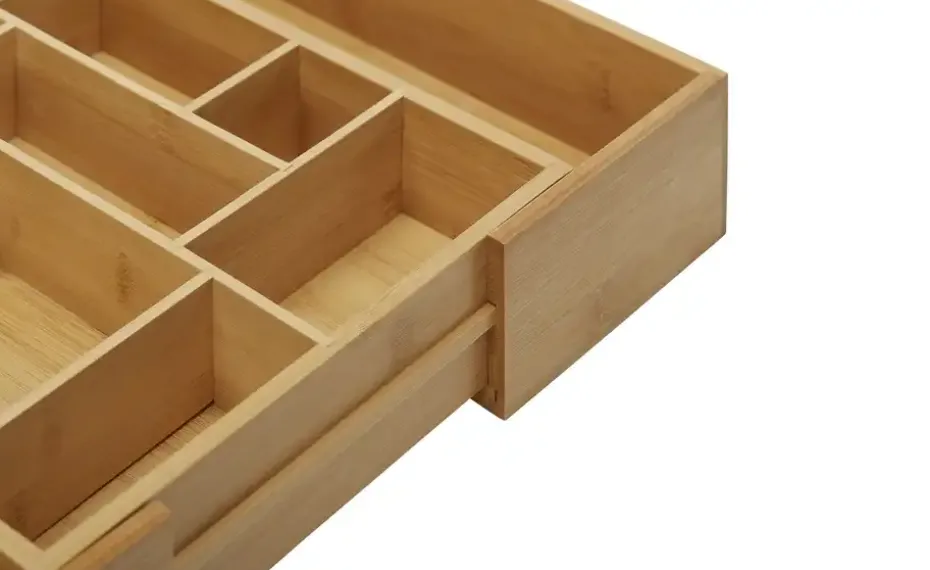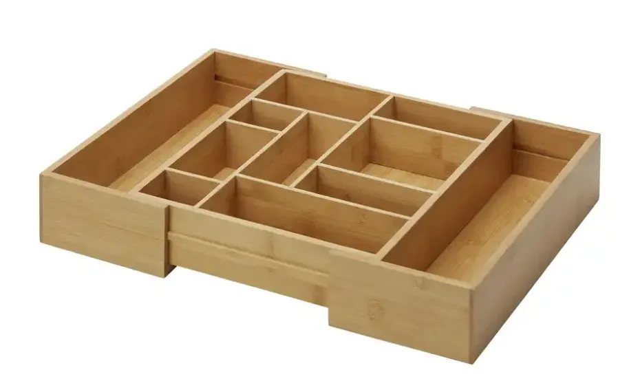 Endlich Ordnung in den Schubladen. Den Schubladen-Organizer gibt es in fester Breite und sogar in ausziehbar. Er passt sich jeder Schubladenbreite an. Das Bambus macht den Schubladenorganizer zu einem absoluten HIngucker.