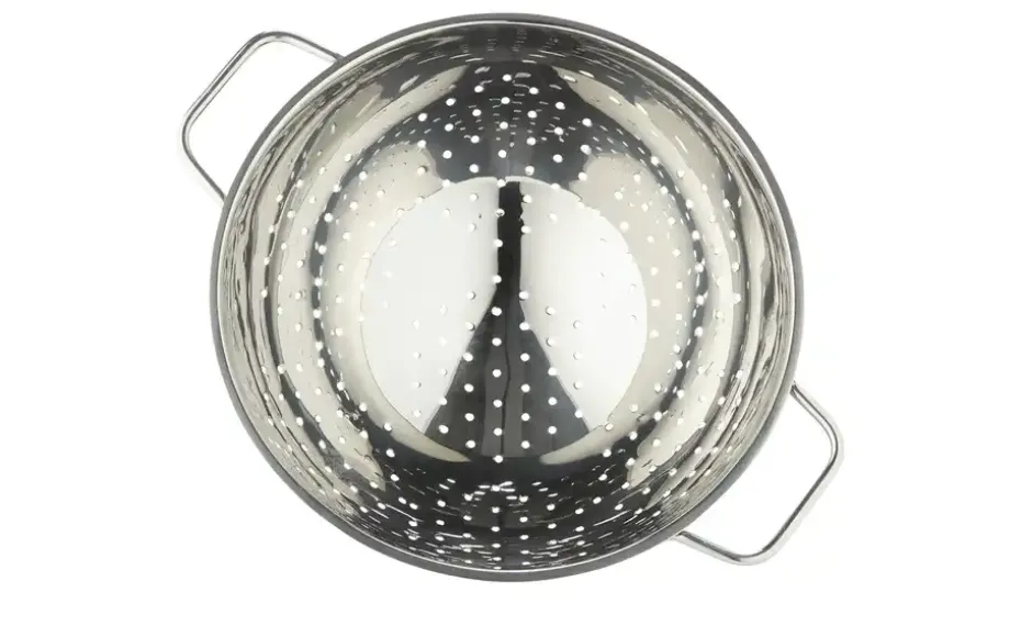 Der Seiher ist aus hochwertigem Edelstahl gefertigt. Seine drei Standfüße ermöglichen das unkomplizierte Abstellen im Spülbecken und auf allen Oberflächen. Die seitlichen Haltegriffe erleichtern die Benutzung.