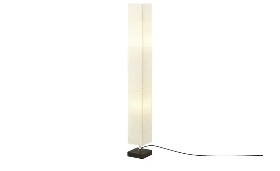 Mit dieser zweiflammigen Stehleuchte erwerben Sie ein dekoratives Accessoire für Ihre Wohn- und Arbeitsräume, das diese jederzeit in ein angenehmes Licht taucht. Der eckige Papierschirm stellt einen harmonischen Kontrast zum dunklen Holzgestell dar und rundet das Bild gekonnt ab. Auf ihrem breiten Holzfuß steht die Leuchte sicher auf jedem Bodenbelag.