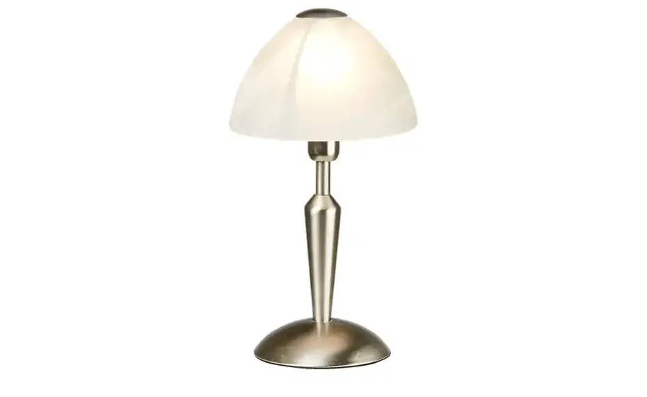 KHG Tischleuchte nickel matt mit Glasschirm | silberfarben, matt