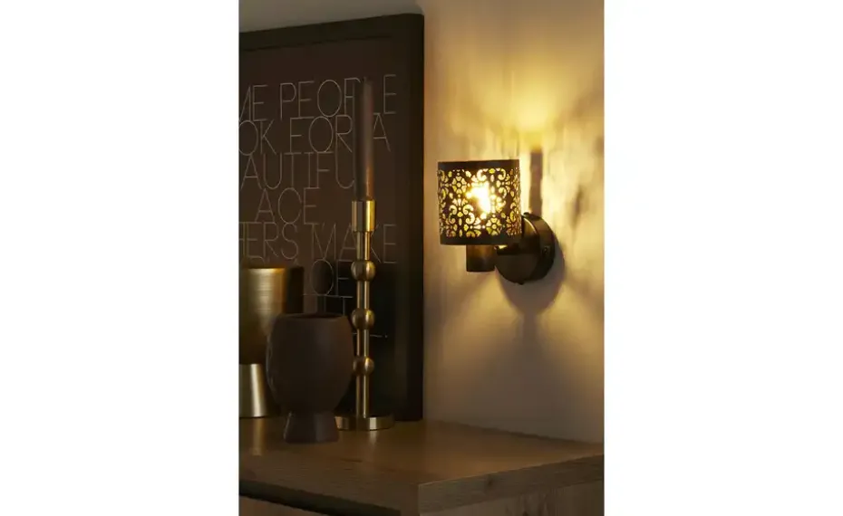 KHG Wandstrahler, 1-flammig, schwarz/gold mit Stanzung
