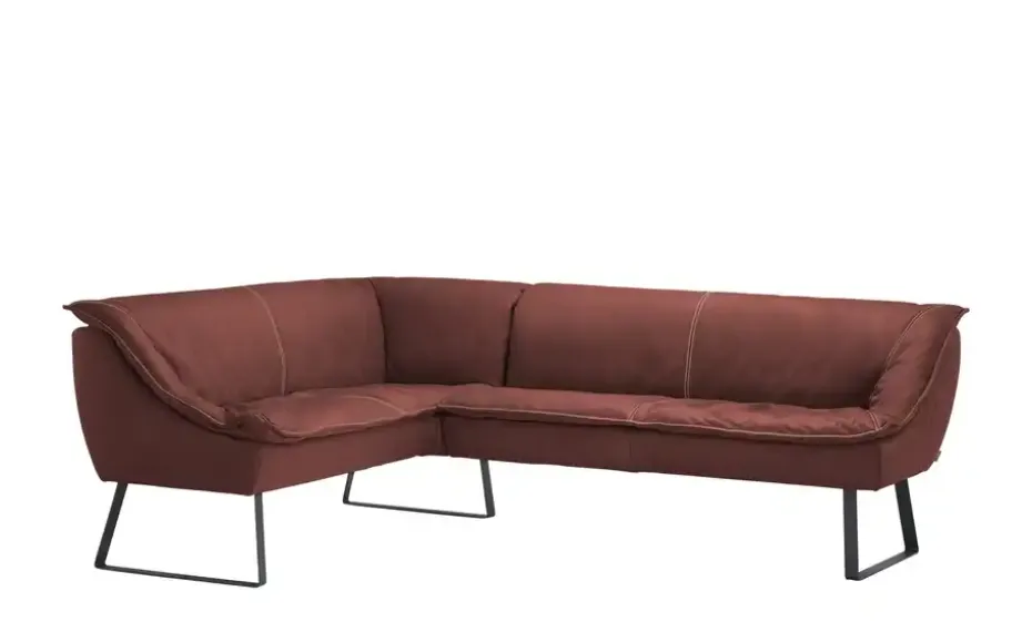 Sorgfältig verarbeitete Materialien, höchster Komfort und ein Design, das sofort ins Auge fällt: Das ist die Leder-Eckbank Alino. Drei mattschwarze Metallkufen tragen die Bank zuverlässig und geben ihr ein schwereloses, luftiges Aussehen. Nehmen Sie auf den dicken Polstern Platz und machen Sie es sich gemütlich. Dank der Kombination aus hochwertigen Polsterunterkonstruktionen sitzen Sie lange bequem. Der Bezug aus echtem Büffelleder ist dezent abgesteppt und mit einem dekorativen Kontrastfaden verziert. Eine Kedernaht betont die Linienführung der Sitzpolster gekonnt und setzt liebevolle Akzente. Die Eckbank Alino hat eine Sitzhöhe von ca. 51 Zentimetern und kann dadurch problemlos zu gängigen Esstischen kombiniert werden. Unikate gefertigt in Bayern: Die Marke KOINOR steht für einzigartige Komfortfunktionen und individuelles Design. Unter Verwendung hochwertigster Materialien entstehen Möbel mit Vorzeigecharakter.