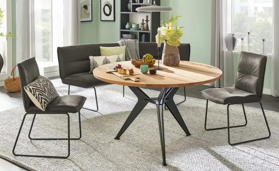Der Kufenstuhl Essay strahlt moderne Eleganz aus. Mattschwarze Rundrohr-Kufen aus robustem Metall sorgen für einen stabilen Stand und ein schwereloses, luftiges Design. Der Sitzbereich ist komfortabel gepolstert und mit einem pflegeleichten Mikrofaserbezug in Vintage-Wildlederoptik bezogen. Dezente Absteppungen und eine dekorative Kedernaht geben dem Kufenstuhl Essay liebevolle Details. Dank seiner Sitzhöhe von ca. 48 Zentimetern passt der Markenstuhl an zahlreiche gängige Esstische. Unser Tipp: Kombinieren Sie den Kufenstuhl Essay zum gleichnamigen Esstisch oder der Rundbank der Serie. So erschaffen Sie eine stilsichere Essgruppe für Ihr Wohnzimmer oder Ihre Küche. Unikate gefertigt in Bayern: Die Marke KOINOR steht für einzigartige Komfortfunktionen und individuelles Design. Unter Verwendung hochwertigster Materialien entstehen Möbel mit Vorzeigecharakter.